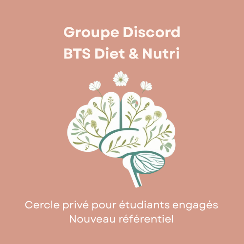 Cette année, NejmaDiet a décidé de créer un groupe Discord pour les étudiants du nouveau référentiel BTS Diététique et Nutrition. L'objectif : vous offrir un espace bienveillant et Good Vibes pour vous accompagner pendant votre BTS Diététique, casser l'isolement et répondre à vos questions ! Pour le prix d'un abonnement streaming (sans citer de nom), tu as accès à une plateforme juste pépite pour tes études.