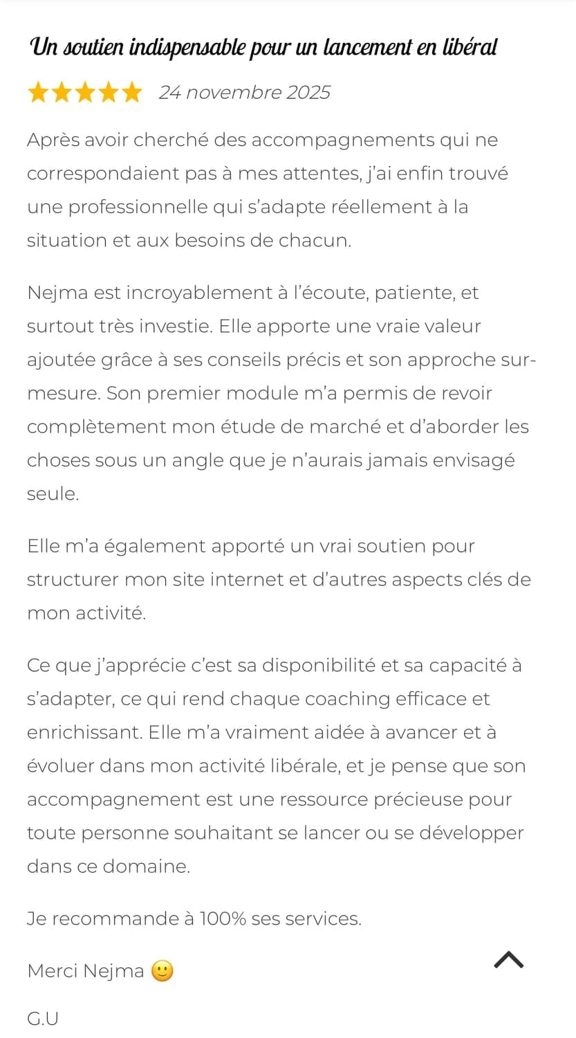 Non. Je m’engage à donner mon maximum pour t'aider à te lancer en libéral mais cela ne relève pas de ma responsabilité si tu n'y arrives pas ou que ton activité ne décolle pas. Je suis soumise à une obligation de moyens et non de résultat. Les conditions de remboursement à titre exceptionnel sont indiquées dans les CGV du programme ci-dessous.